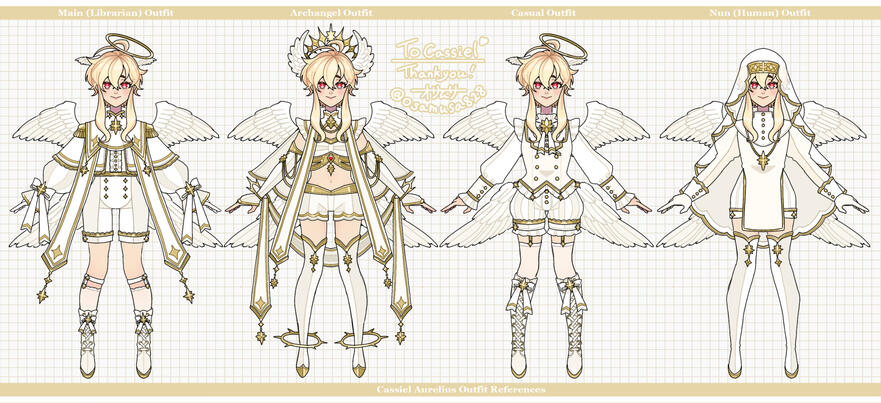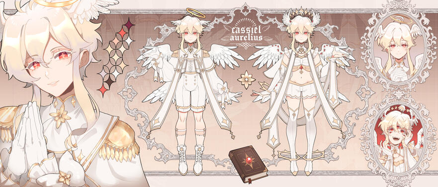 watching over humanity, Cassiel lost hys prestigious standing when hy dared to challenge God's plan in an attempt to prevent the death of the human hy fell in love with, being casted out from Heaven as a result.Now relegated to the role of librarian, hy spends hys days in solitude reading and taking care of the endless scriptures and books located at the Holy Library, a hidden archive where all of Divine and Human knowledge is stored. Despite its intended purpose, the secrecy and exclusivity surrounding this sanctum makes it nearly impossible for anyone to gain access to it, essentially serving as a gilded cage for whom gets appointed as its Keeper.Forbidden from leaving hys post and cut off from the outside world, Cassiel's only company are the doves perched by the library's windows.Lore comic 1 ✦ Lore comic 2